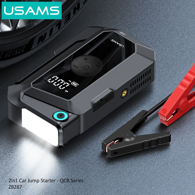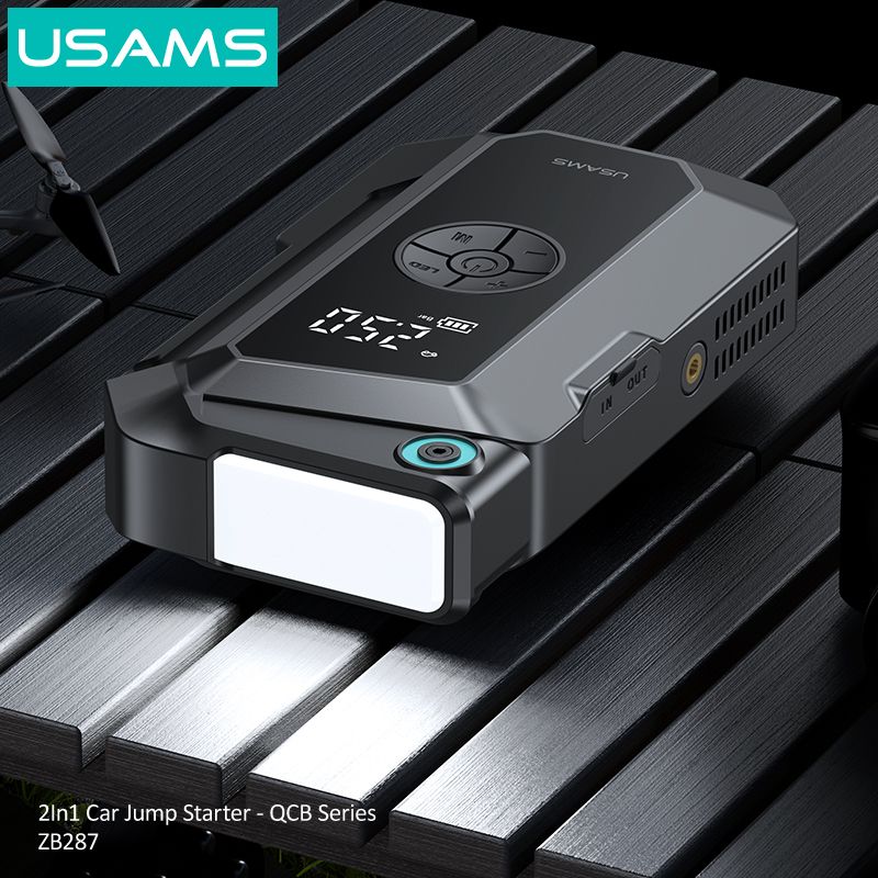 Hình Ảnh Bộ Kích Bình 2-in-1 Kiêm Bơm Lốp Cho Ô Tô USAMS ZB287 (1000A, 8000mAh)