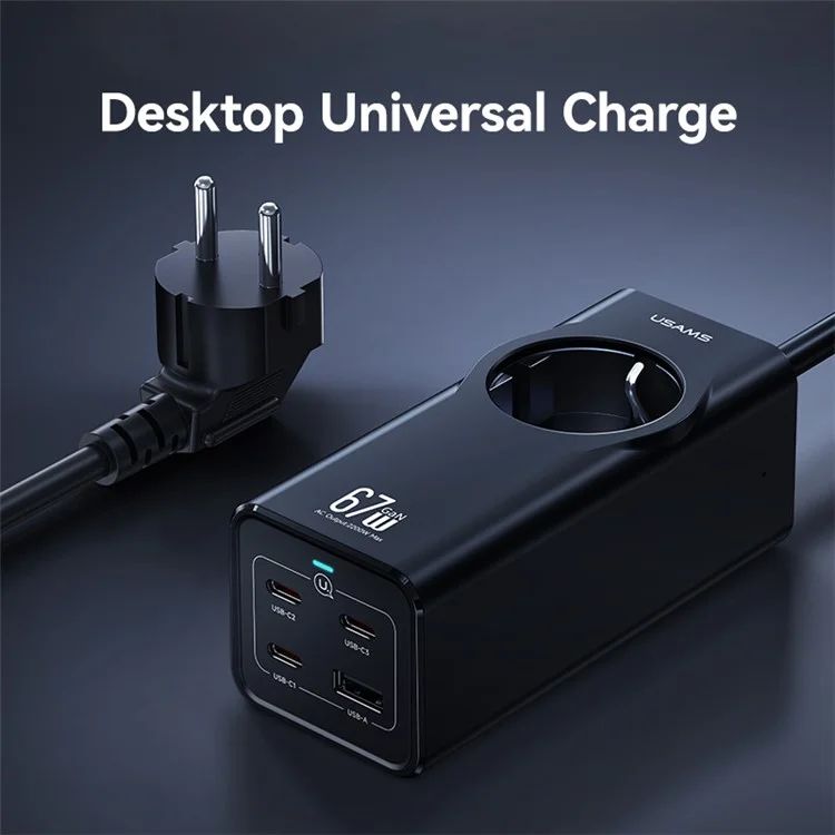 Bộ Sạc Nhanh Tích Hợp Dây Nguồn Nối Dài USAMS CC225 67W 4-port Fast Charging Adapter 3 Type-C+1 USB 2200W