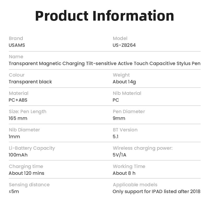Chỉ cần kết nối đơn giản với iPad, bạn có thể bắt đầu sử dụng bút ngay lập tức mà không cần cài đặt phức tạp. Điều này làm cho bút Usams ZB264 trở thành lựa chọn lý tưởng cho cả người mới sử dụng và người dùng chuyên nghiệp.