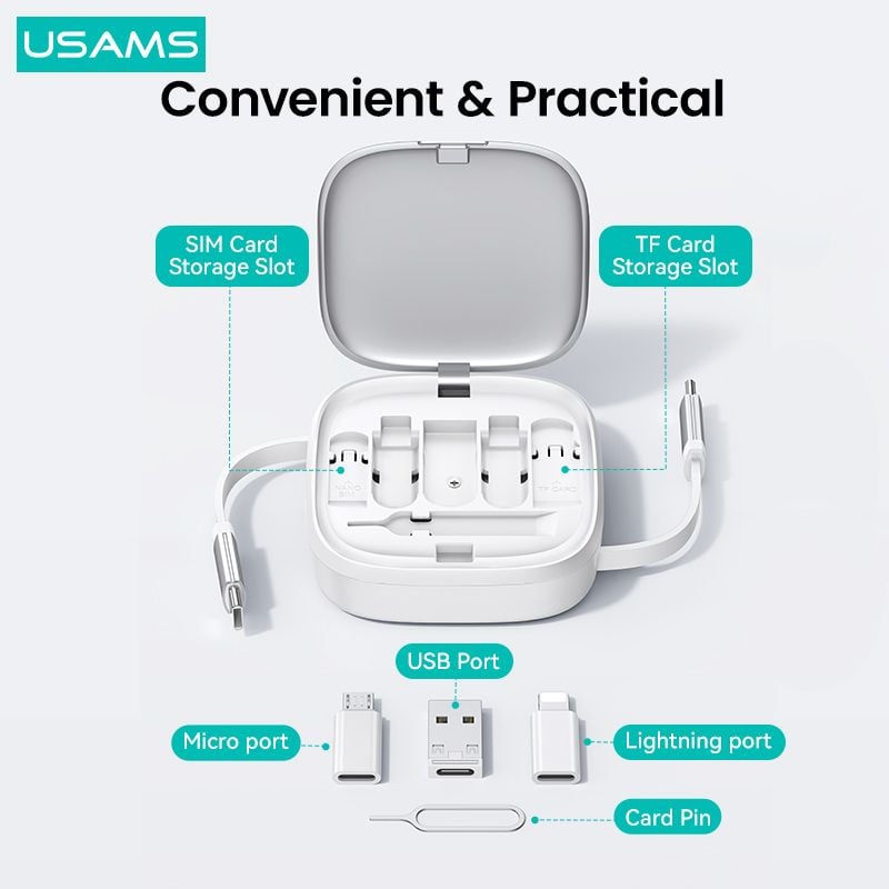 Hình Ảnh Cáp Sạc Dây Rút Đa Năng USAMS SJ650 U87 60W (Tích Hợp Bộ Đầu chuyển )