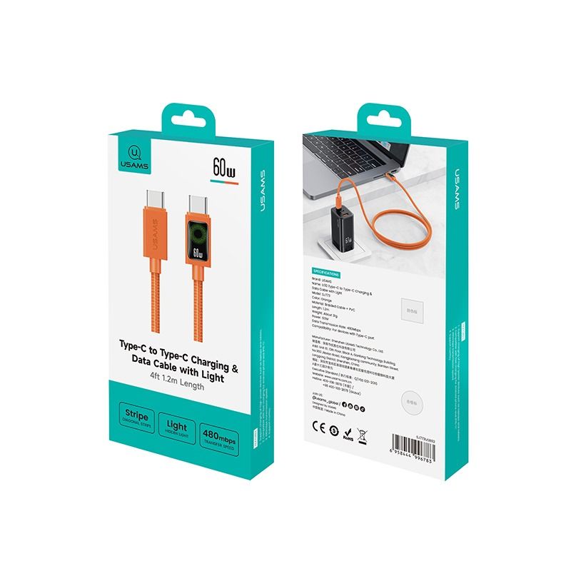 Cáp Sạc Nhanh C to C USAMS SJ773 U92 60W (1.2m, With Light, 480Mbps)