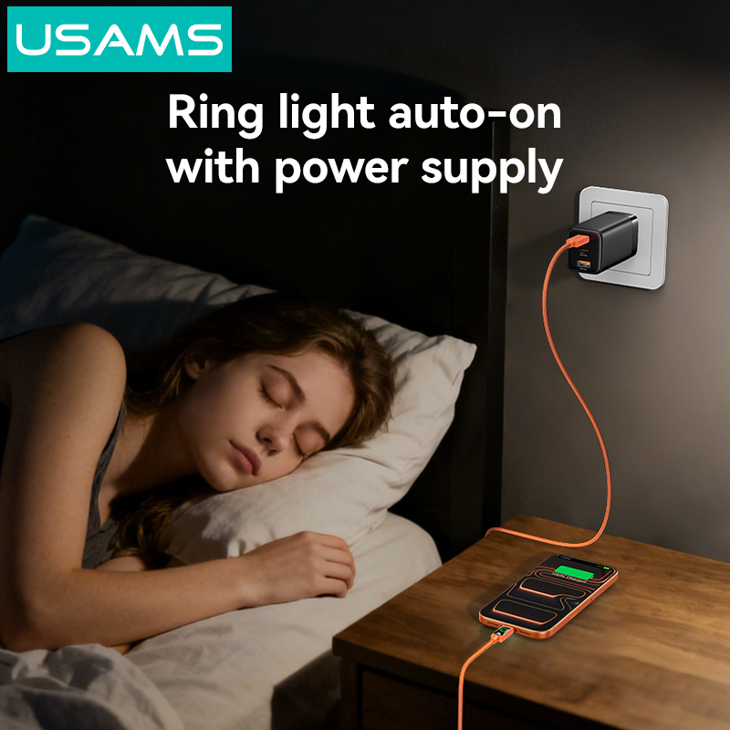 Hình Ảnh Cáp Sạc Nhanh C to C USAMS SJ773 U92 60W (1.2m, With Light, 480Mbps)