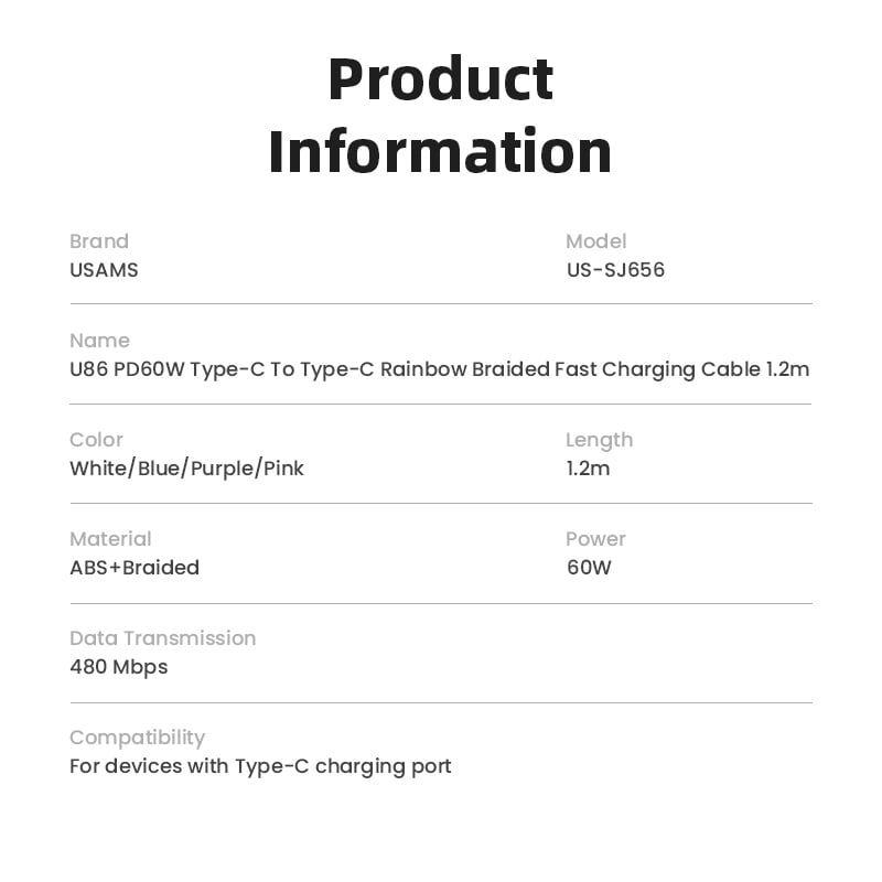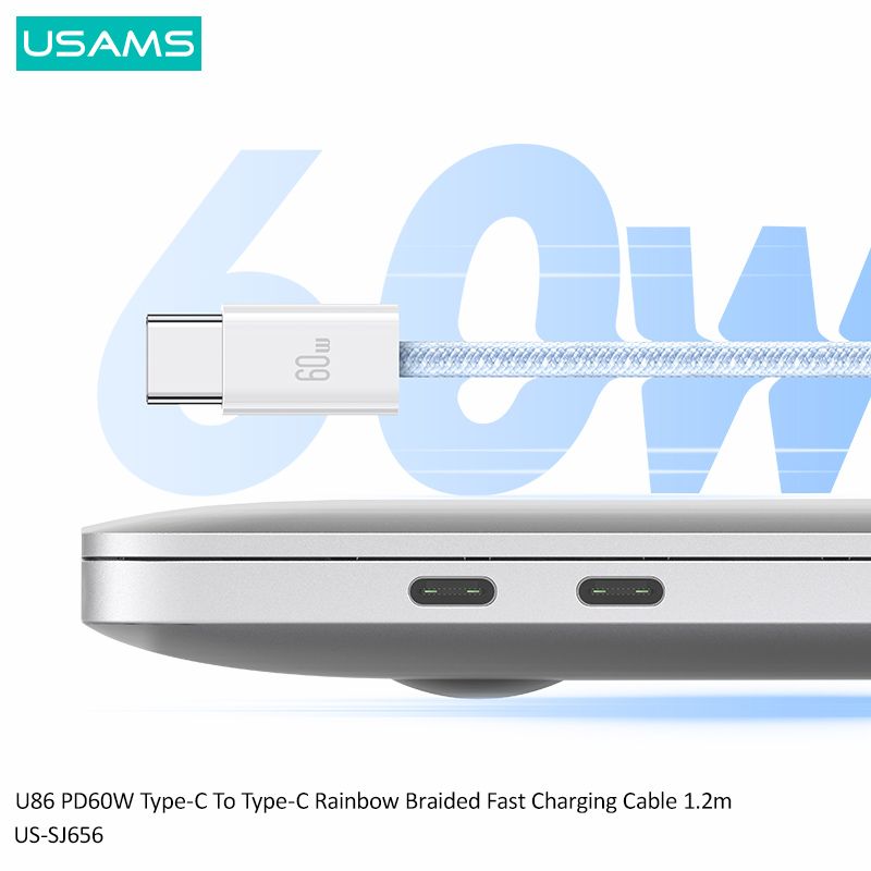 Chi Tiết Sản Phẩm Cáp sạc nhanh USAMS SJ656 U86 PD60W Type-C To Type-C Rainbow Braided