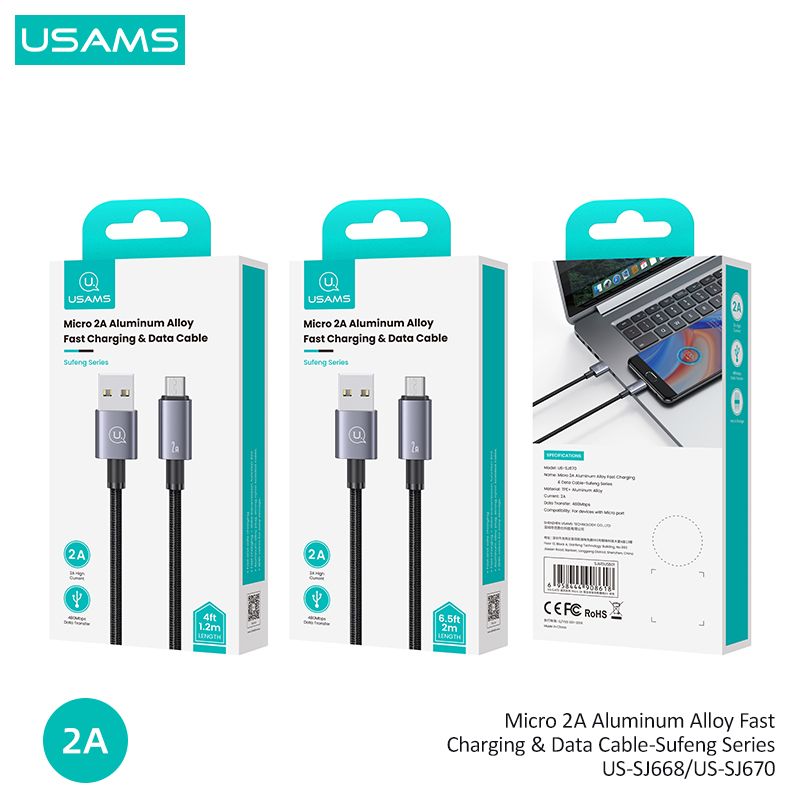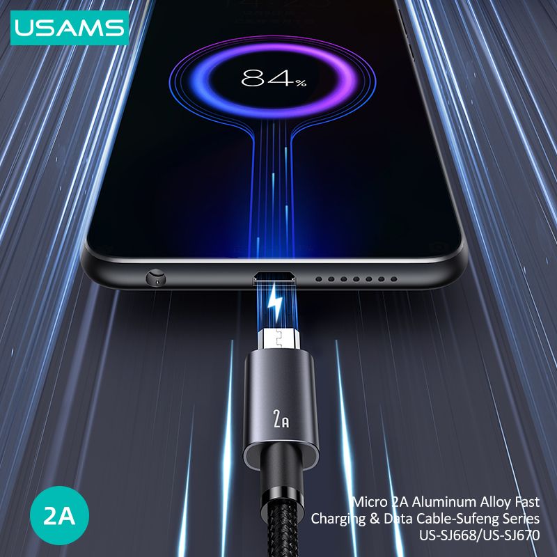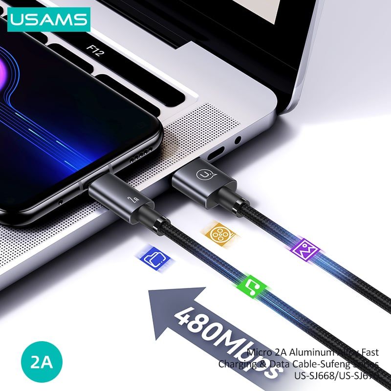 Cáp sạc nhanh USAMS SJ668 Micro 2A Aluminum Alloy Sufeng Series