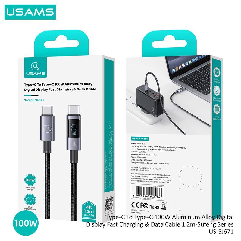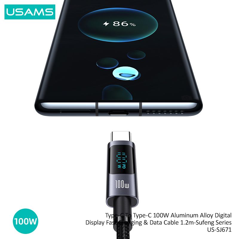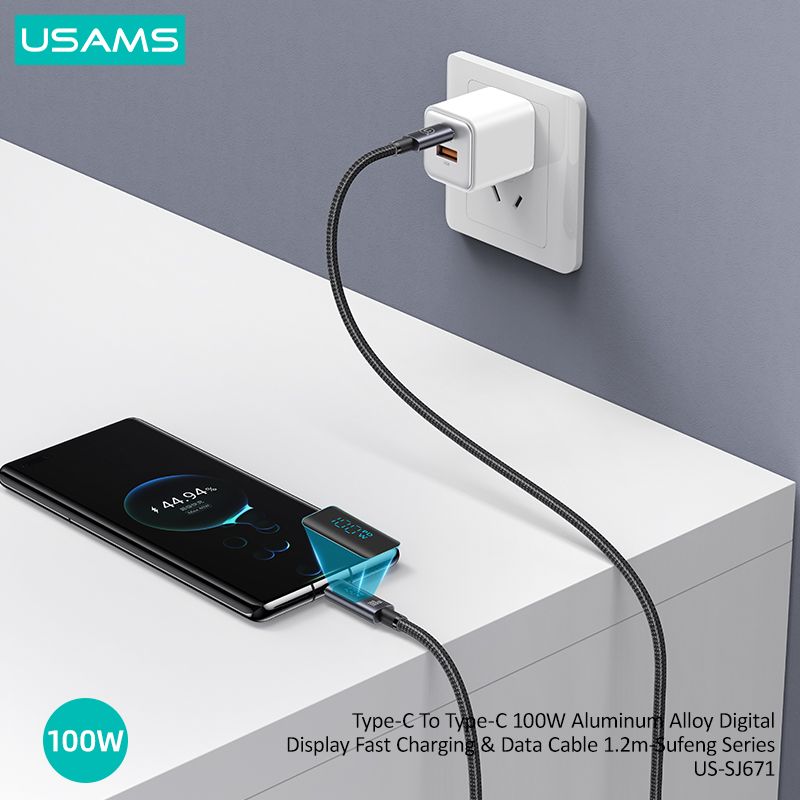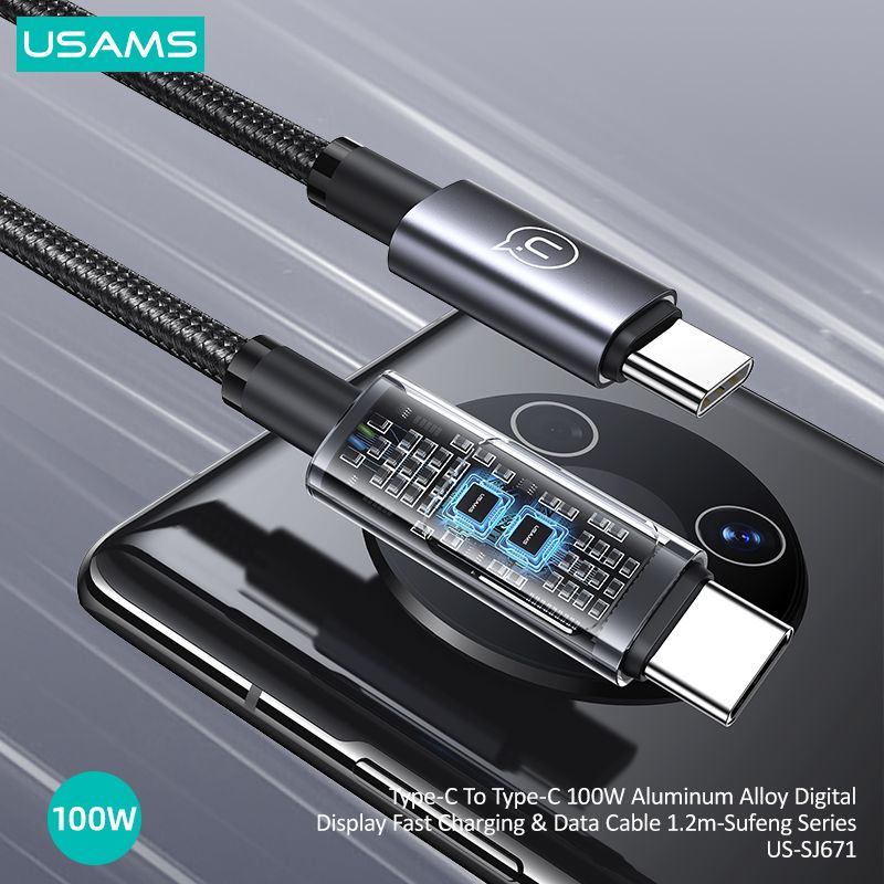 Chi Tiết Sản Phẩm Cáp sạc nhanh USAMS SJ671 Type-C To Type-C 100W Aluminum Alloy Digital Display Sufeng Series