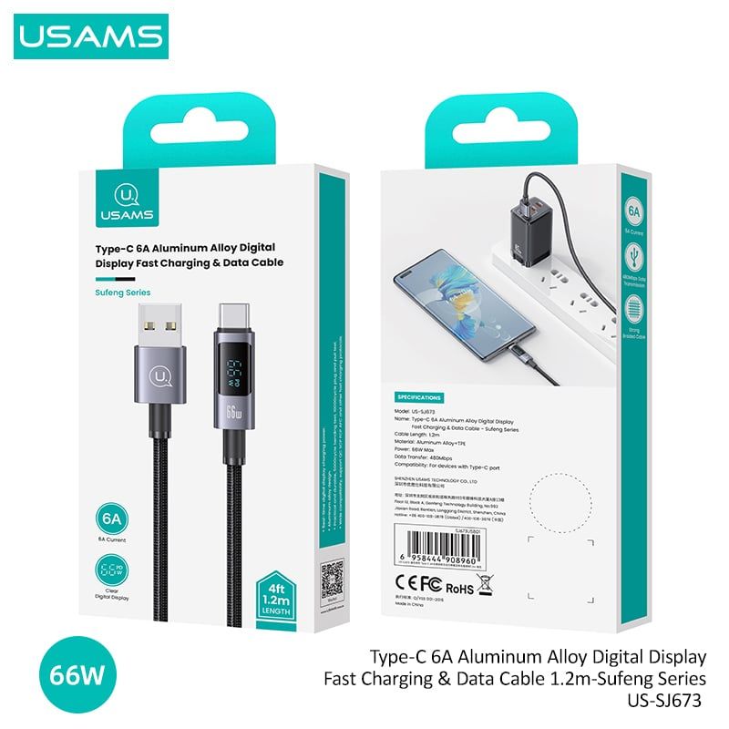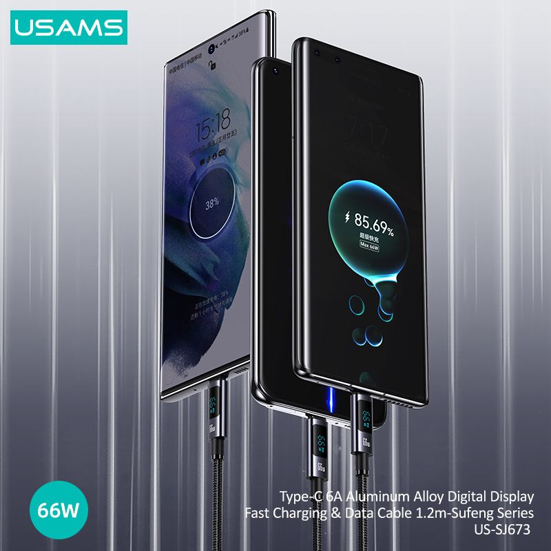 Giới thiệu Cáp sạc nhanh USAMS SJ673 Type-C 6A Aluminum Alloy Digital Display Sufeng Series