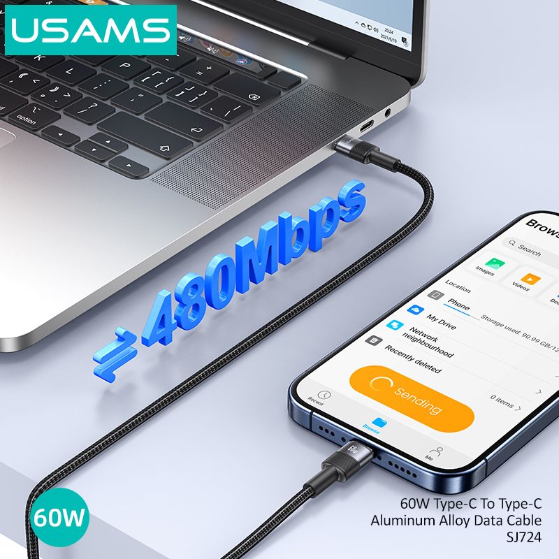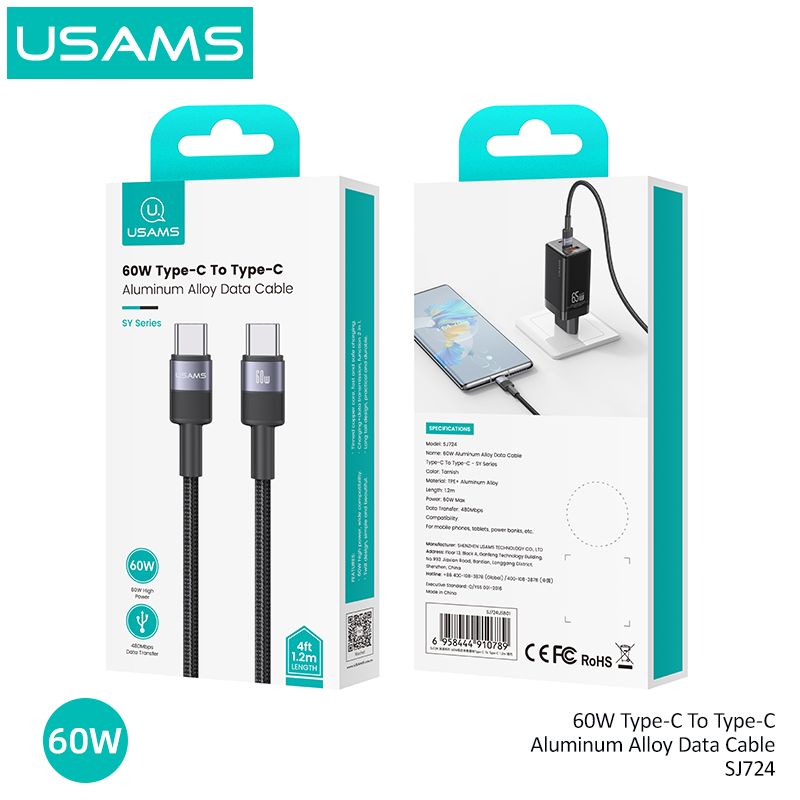 Chi Tiết Sản Phẩm Cáp sạc nhanh USAMS SJ724 60W Type-C To Type-C Aluminum Alloy SY Series