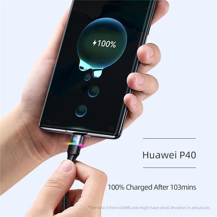USAMS SJ537 được trang bị chip E-Marker thông minh, giúp kiểm soát dòng điện và điện áp, đảm bảo an toàn tuyệt đối trong quá trình sạc. Với chiều dài 1.2 mét, cáp mang đến sự thoải mái khi sử dụng, cho phép bạn vừa sạc vừa sử dụng thiết bị mà không gặp bất kỳ trở ngại nào. Sản phẩm tương thích với hầu hết các thiết bị có cổng Type-C, từ điện thoại, máy tính bảng đến laptop. Ví dụ, với Huawei P40, thời gian sạc đầy chỉ mất 103 phút.