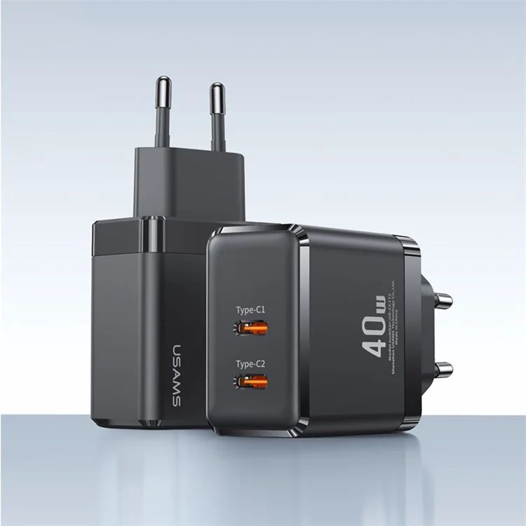 Củ Sạc Nhanh USAMS CC172 T54 40W Dual Type-C Ports GaN Fast Charger
