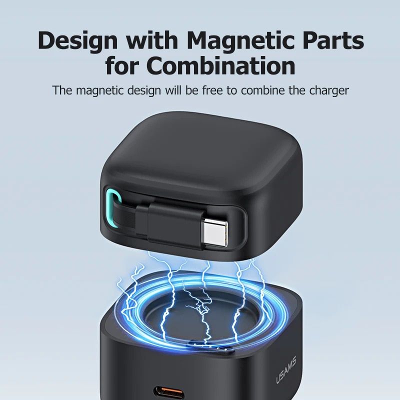 Hình Ảnh Củ Sạc Nhanh USAMS USB GaN Charger 35W Type C PD Fast Phone Charger Built in Quick Charge Cable