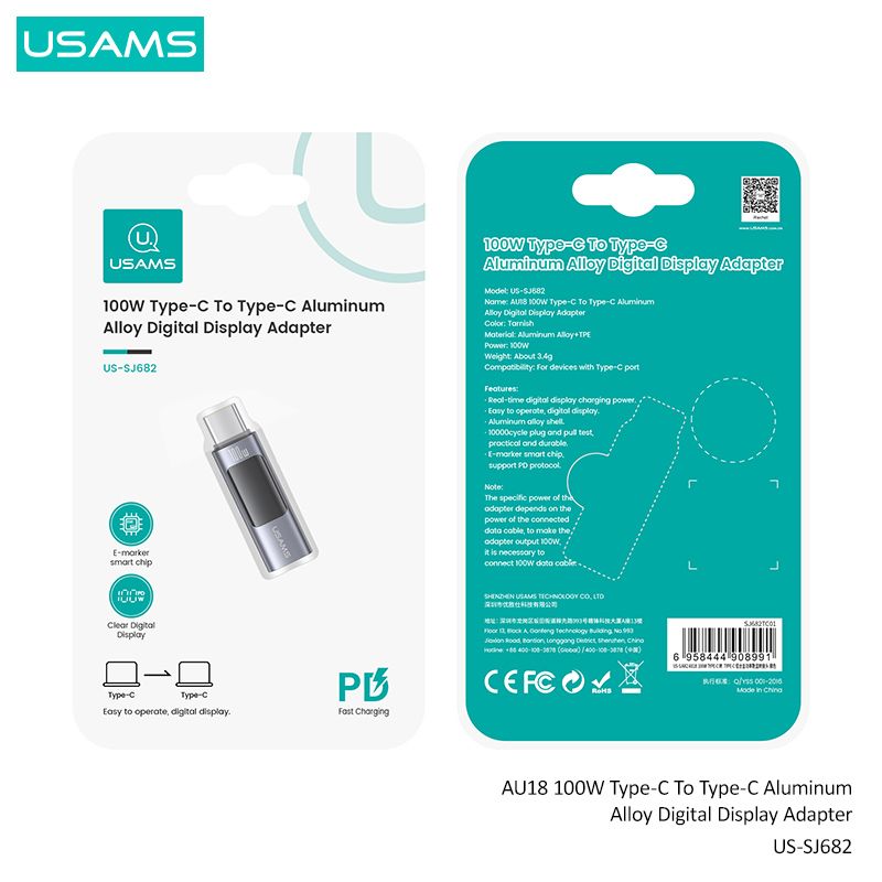 Giới thiệu Đầu chuyển C to C USAMS SJ682 AU18 100W Aluminum Alloy Digital Display