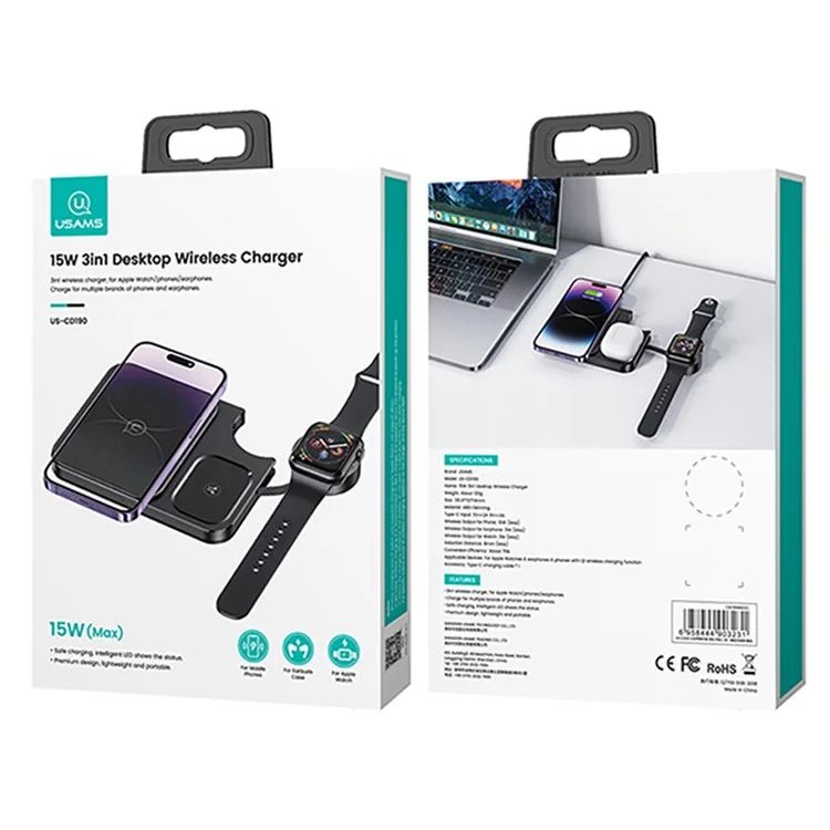 Đế Sạc Không Dây USAMS CD190 3-in-1 15W Lightweight Charging Pad