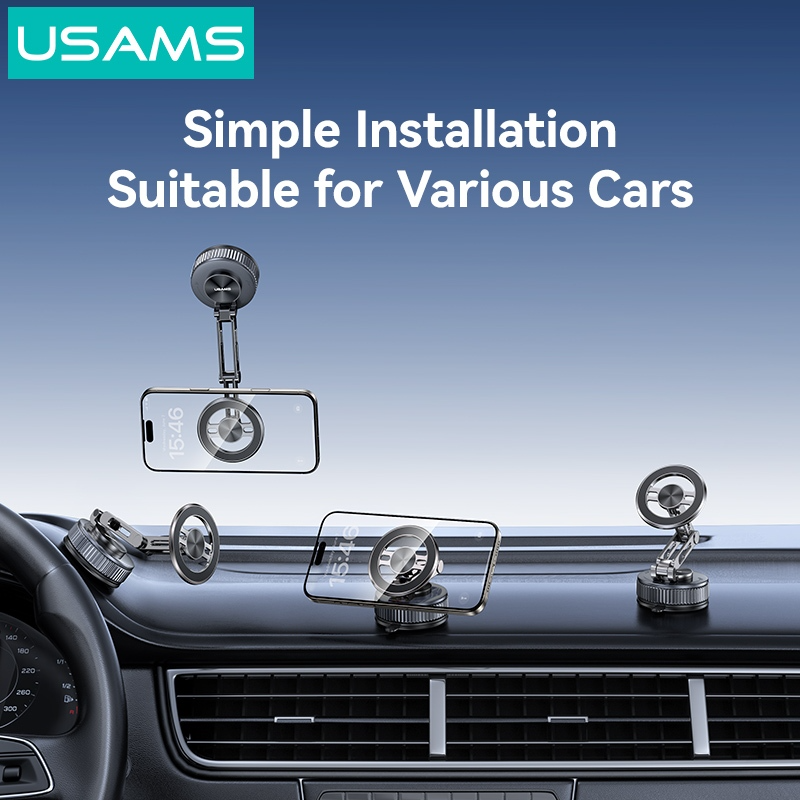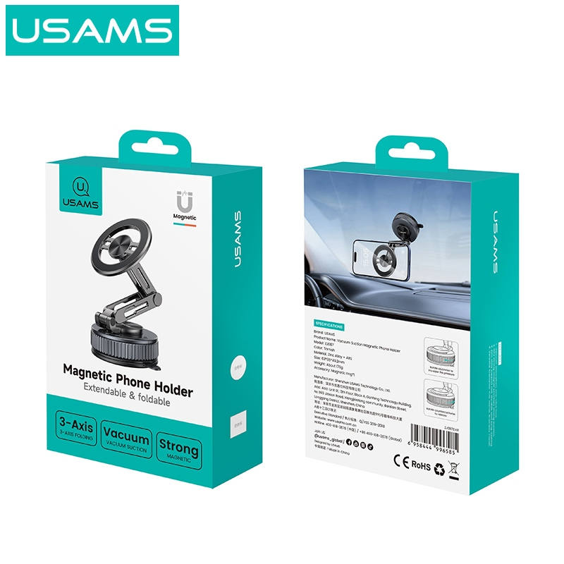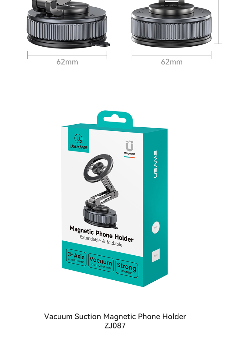 Giới thiệu Giá Đỡ Điện Thoại Hút Chân Không Ô Tô Từ Tính + Để Bàn USAMS ZJ087 (360° Rotation, 360° Foldable, 3-Axis folding, N52 Strong magnetic adsorption)