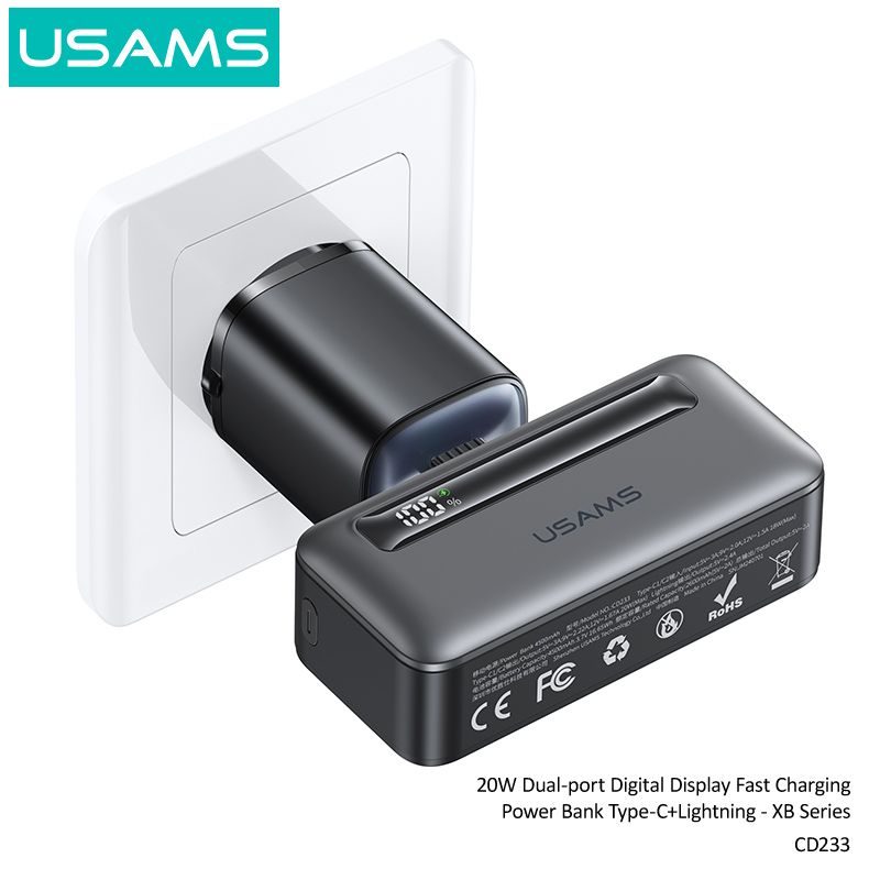 Hình Ảnh Pin Dự Phòng Mini USAMS CD233 4500mAh 20W (Cổng Type-C + Lightning, Digital Display)