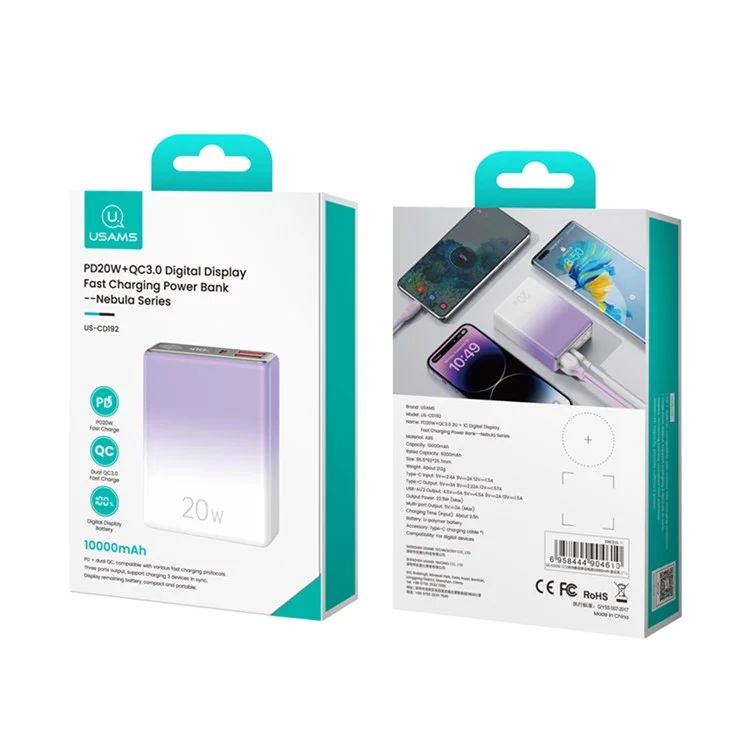 Với kích thước chỉ bằng một nửa chiếc điện thoại, USAMS CD192 Nebula Series dễ dàng bỏ túi và mang theo bên mình mọi lúc mọi nơi. Thiết kế màu gradient thời thượng, kết hợp cùng bề mặt mạ điện tinh xảo, tạo nên vẻ ngoài sang trọng và hiện đại. Sản phẩm có 3 màu: đen, trắng và tím gradient cho bạn lựa chọn theo sở thích.