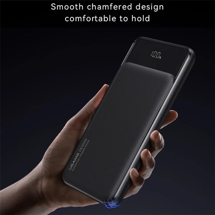 Thiết kế tinh tế với vỏ ngoài bằng nhựa ABS+PC cùng họa tiết vân sọc chống trơn trượt, mang lại cảm giác cầm nắm thoải mái và chắc chắn. Màn hình LED thông minh hiển thị phần trăm pin còn lại, giúp bạn dễ dàng kiểm soát dung lượng pin. Đặc biệt, với công nghệ NTC, sạc dự phòng USAMS kiểm soát nhiệt độ mạch điện, đảm bảo an toàn tuyệt đối trong quá trình sạc.