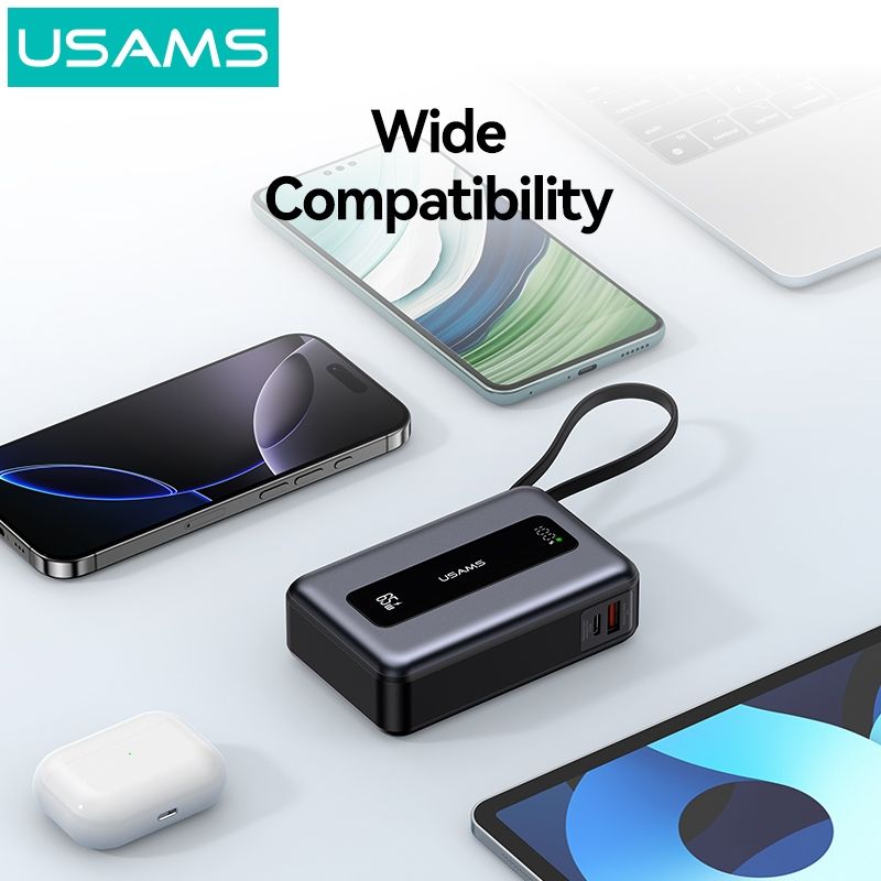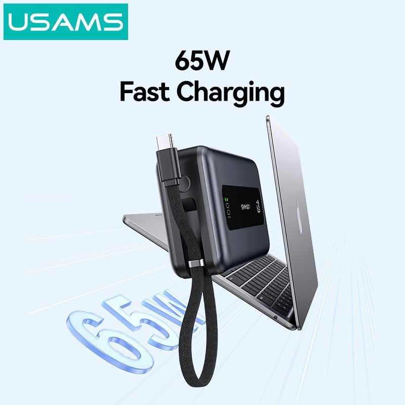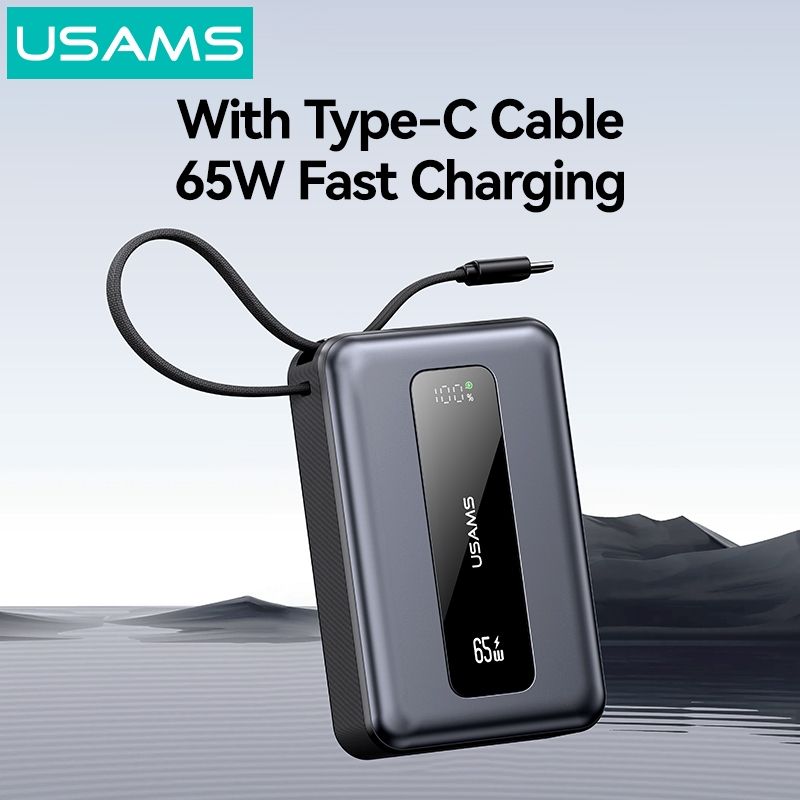 Hình Ảnh Pin Dự Phòng USAMS CD243 20000mAh 65W (Digital Display, 3-Port, With Built-in Type-C Cable, 3C Certification)
