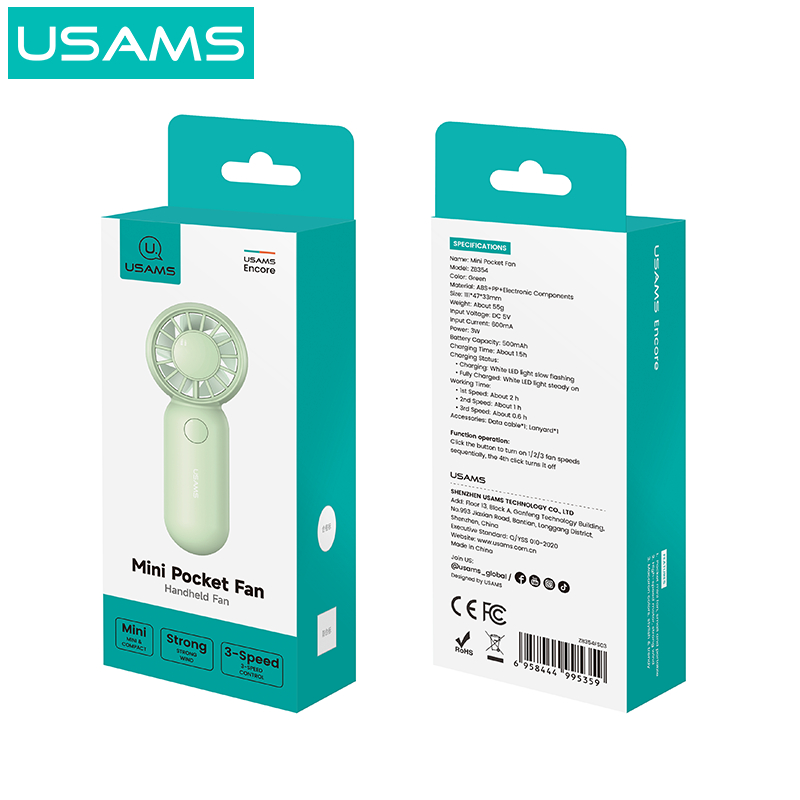 Hình Ảnh Quạt Mini Cầm Tay USAMS ZB354 3W (500mAh, 3 Speed Settings, 10400RPM, 2H)