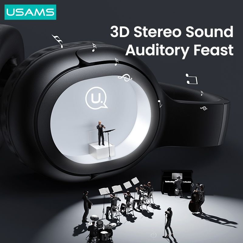 Tai Nghe Chụp Tai USAMS YG23 (Bluetooth v5.3, 300mAh, 40hrs, 3D Stereo Sound, HD calls, thumping bass, customized 3D stereo sound, immersive music listening)