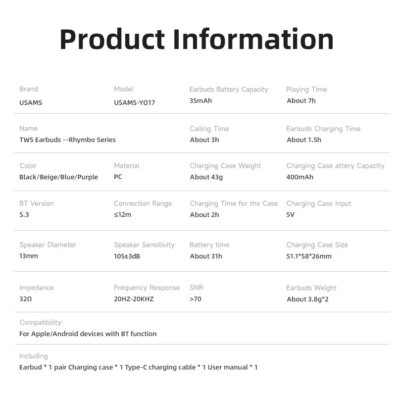 Giới thiệu Tai Nghe Không Dây TWS USAMS YO17 BE (Bluetooth v5.3, 7H, 400mAh)