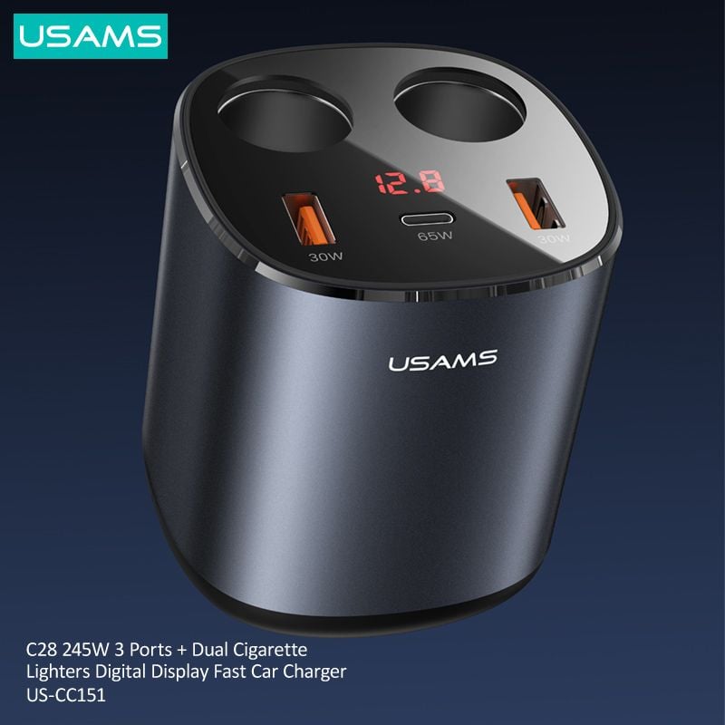 Hình Ảnh Tẩu Sạc Cho Ô Tô C+2A+2 Tẩu Nối Dài USAMS CC151 C28 245W (Digital Display Voltage)