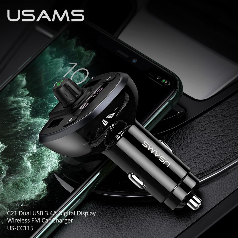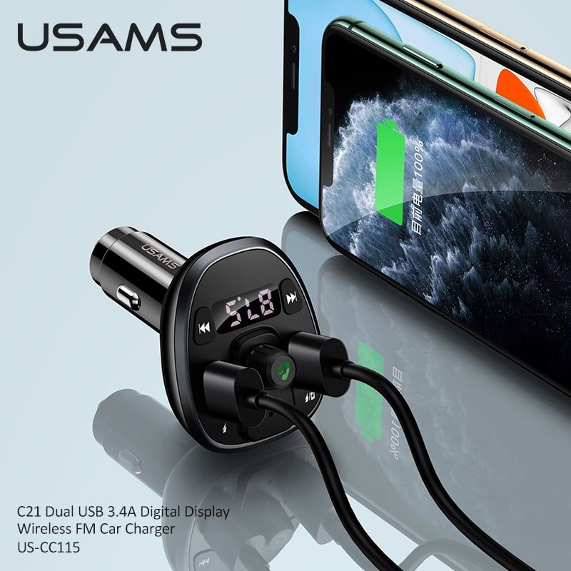 Hình Ảnh Tẩu Sạc Kiêm Phát Sóng FM 2*USB USAMS CC115 C21 15W (Bluetooth 5.0, 3.4A)