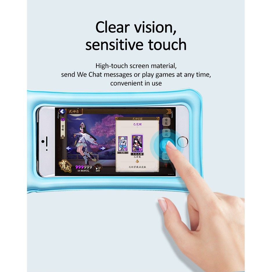 Túi được thiết kế với tiêu chuẩn chống nước IP68, giúp bảo vệ điện thoại của bạn khỏi nước ở độ sâu lên đến 1.5 mét trong thời gian dài, lý tưởng cho những chuyến đi biển hay các hoạt động thể thao dưới nước.